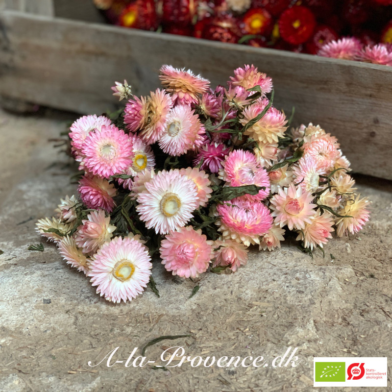 Økologisk Evighedsblomst, lyserød. Bundt af ca 10 stilke vi selv har dyrket på egen mark.